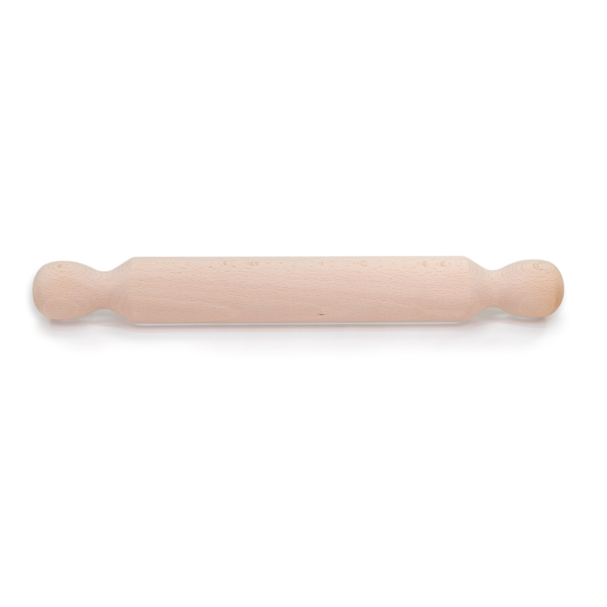 Corpo in legno massello lavorato con cura per una finitura liscia e uniforme - Il corpo di questo mattarello è interamente realizzato in legno massello di alta qualità, lavorato con estrema cura per ottenere una superficie di lavoro perfettamente liscia e uniforme. Questa caratteristica è fondamentale per stendere la pasta senza rischiare di danneggiarla o creare irregolarità, garantendo risultati di alta qualità in ogni preparazione culinaria.