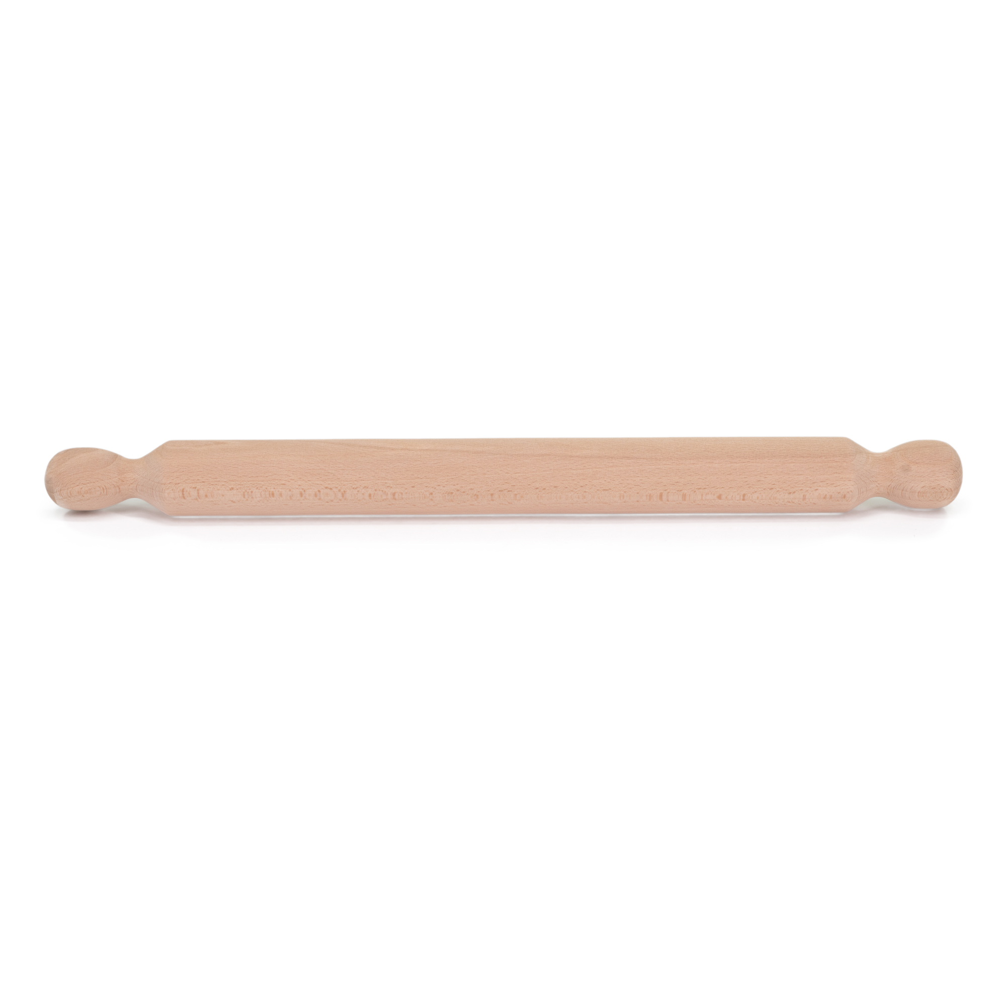 Corpo in legno massello lavorato con cura per una finitura liscia e uniforme - Il corpo di questo mattarello è interamente realizzato in legno massello di alta qualità, lavorato con estrema cura per ottenere una superficie di lavoro perfettamente liscia e uniforme. Questa caratteristica è fondamentale per stendere la pasta senza rischiare di danneggiarla o creare irregolarità, garantendo risultati di alta qualità in ogni preparazione culinaria.