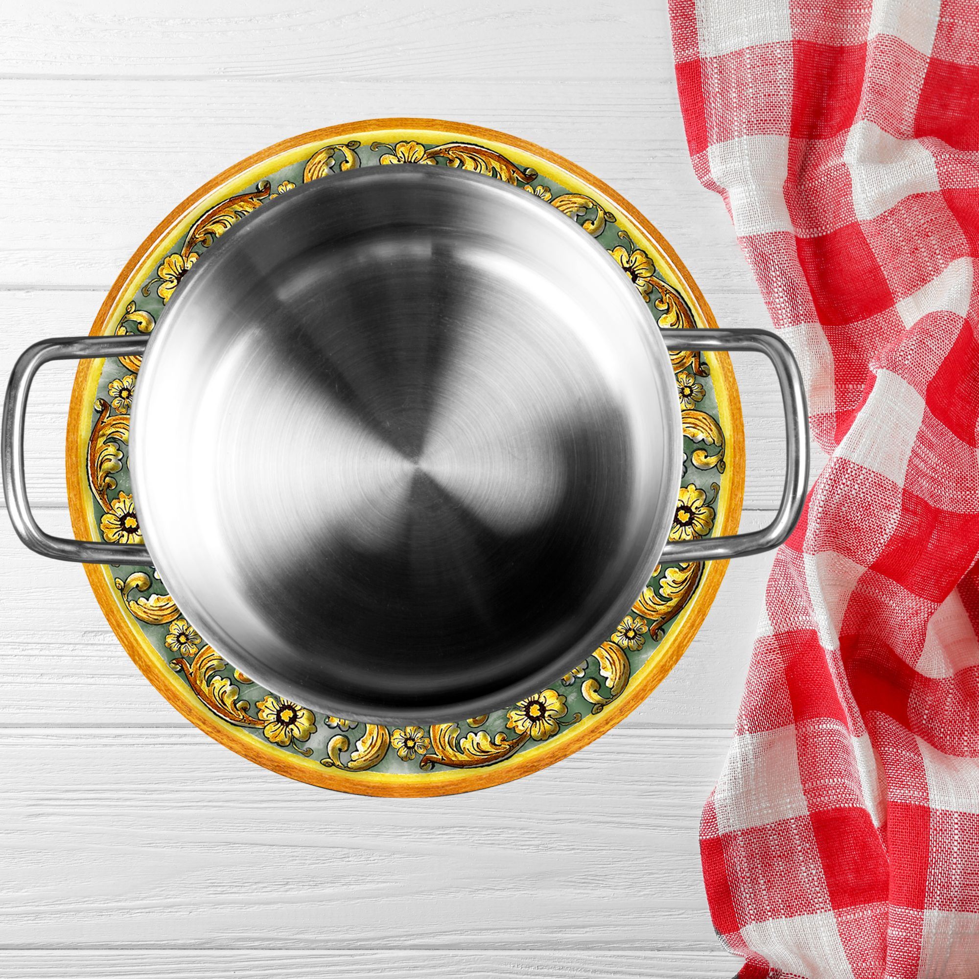 VERSATILE: Utile sottotutto Rotondo da usare come sotto pentola, sotto piatto, sotto bicchiere o centrotavola decorativo. Scegli tra le varianti la decorazione che richiama lo stile e il tema dell'albero della vita, delle tipiche foglie di banano o tropicali a colori e grigio tortora, i limoni di Sicilia, Napoli e Sorrento, le tipiche Ceramiche, con colori vivaci e di alta qualità per abbellire la tavola o la cucina in casa o in ambienti non domestici e lavorativi, in ogni occasione.