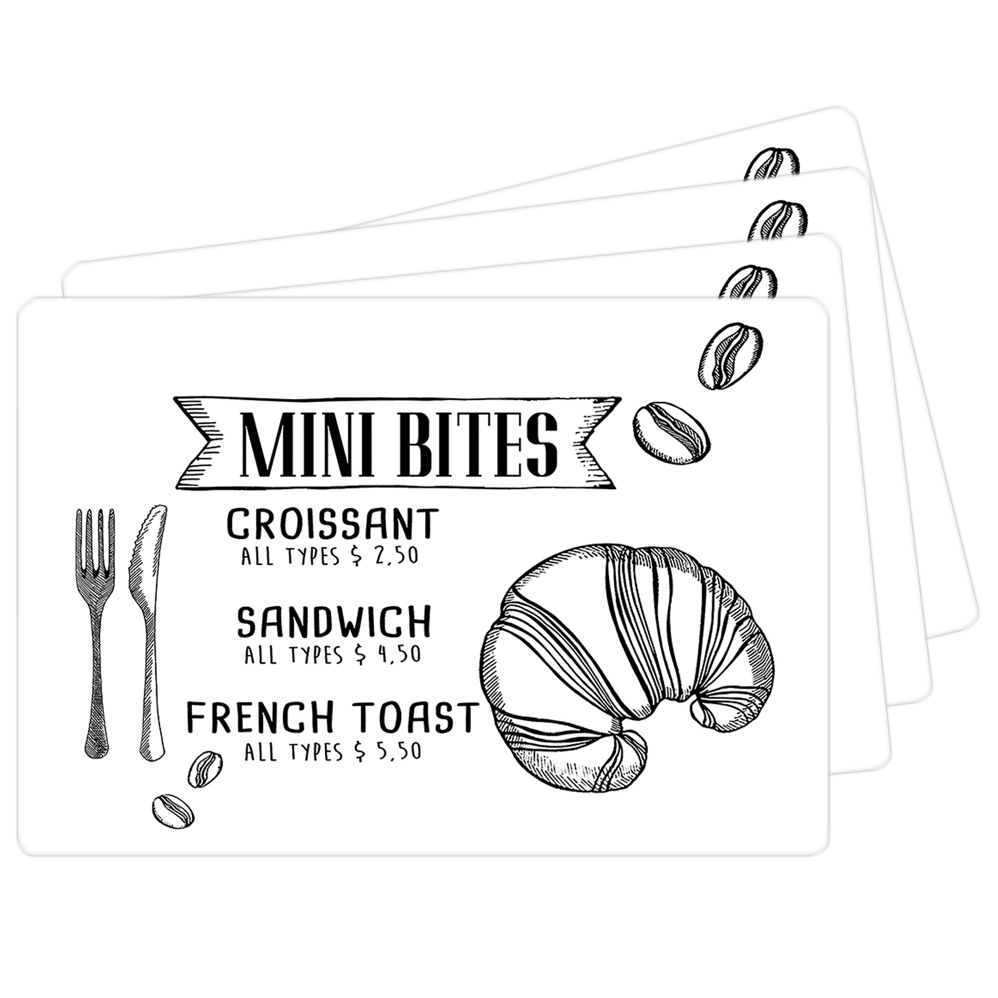 Tovagliette americane lavabili, set da 4 pezzi in PVC rettangolari 28,5x43 cm, decorate con tema MINI BITES -