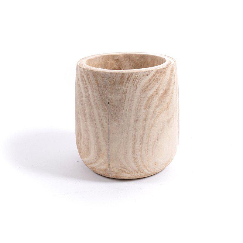 Il vaso in legno regala un tocco di morbidezza alla vostra pianta o composizione floreale. Puo' essere usato come centro tavola, o complemento di arredo per bagni o soggiorno. Dona in qualsiasi ambiente un gusto rilassante portando la natura in casa. La sua struttura e' solida e spessa.